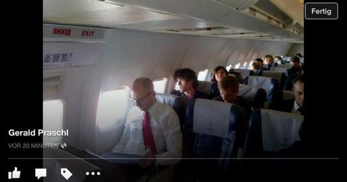 Премьер-министр Украины Арсений Яценюк не изменяет постреволюционной традиции и продолжает летать рейсовыми самолетами.