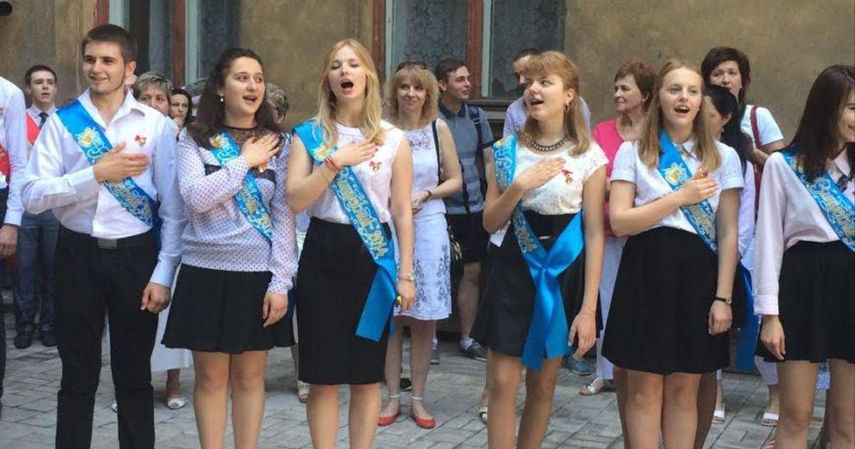В Мариуполе выпускники исполнили гимн Украины со слезами на глазах. ФОТО