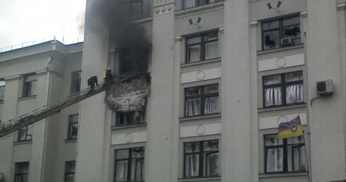 В то же время, луганские СМИ сообщают, что взрыв и пожар в здании ЛОГА произошел из-за попадания авиационного снаряда.