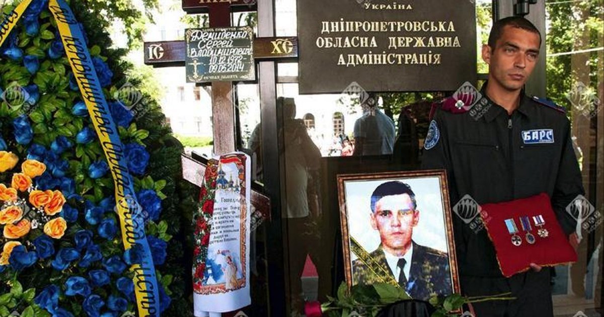 В Днепропетровске у здания облгосадминистрации состоялась церемония прощания с заместителем командира батальона территориальной обороны Днепропетровской области Сергеем Демиденко, который погиб 9 мая 2014 года во время проведения АТО в Мариуполе.