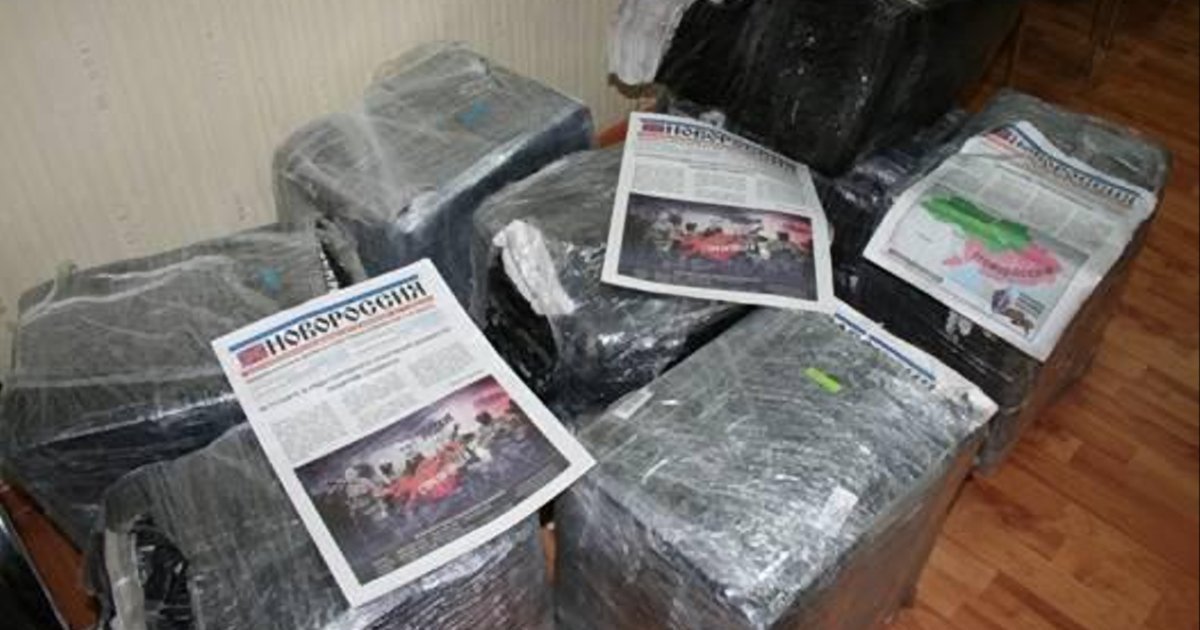 "17 июня в Харькове в помещении одной из служб грузоперевозок сотрудники СБУ задержали местного жителя во время получения посылки. Груз весом 220 кг состоял из почти 10 тысяч экземпляров печатного издания под названием "Новороссия". В дальнейшем злоумышленник должен был распространить их на территории Харьковщины", -сказано в сообщении.