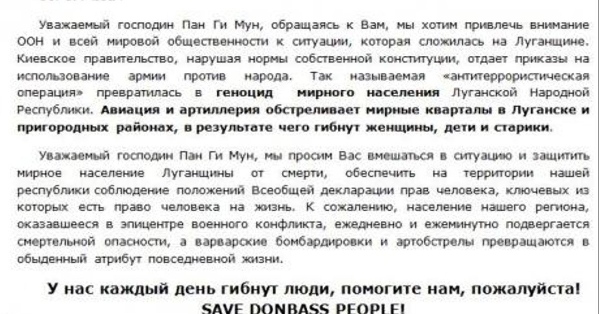 Боевики заставляют луганчан подписывать обращение в ООН. ДОКУМЕНТ