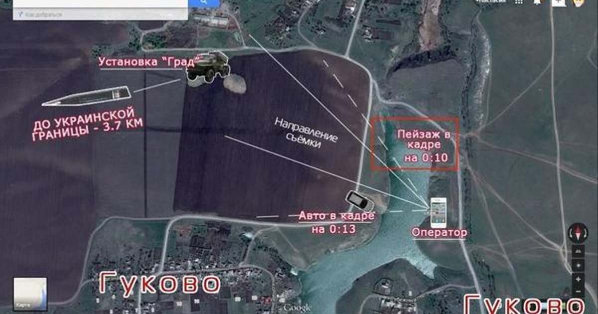 Позже, активисты опубликовали локализацию на карте места дислокации установки "Град" в Ростовской области, восстановленную благодаря идентификации местности заснятой на видео, а также анализе скорости звука от выстрела артустановки.