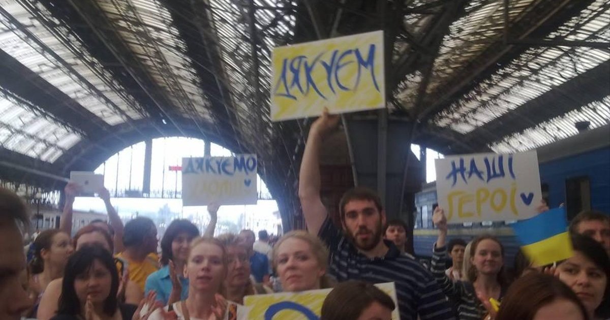 Львовяне радостно встречали своих защитников на городском железнодорожном вокзале.