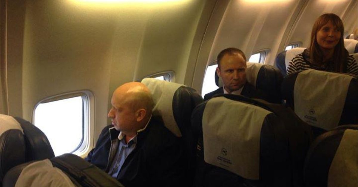 "Самолет МАУ Киев-Вильнюс. Эконом-класс. Александр Турчинов летит на конференцию безо всяких понтов".