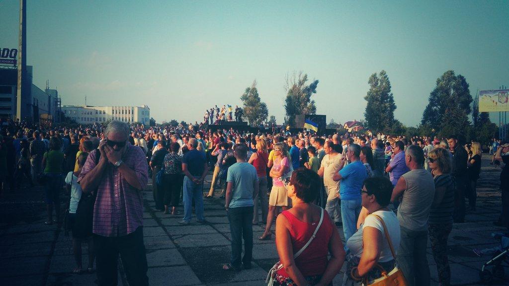 Немало людей держат в руках украинские флаги. Также собравшиеся развернули огромный сине-желтый стяг. Молодежь одета в футболки с трезубцами. Также поступила информация о том, что мэр Мариуполя Юрий Хотлубей хотел выступить перед собравшимися, но его освистали. Как пишет нардеп Егор Фирсов, на митинг вышло около 5 тысяч человек.