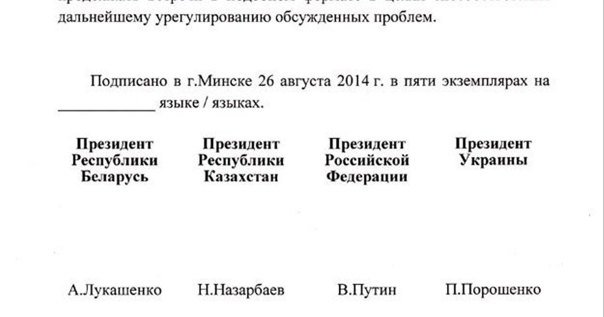 Во время многосторонних переговоров в Минске Россия пыталась навязать Украине итоговый меморандум, текст которого попал в распоряжение "Украинской правды". Официально он назывался "Итоговый документ встречи высокого уровня глав государств Республики Беларусь, Республики Казахстан, Российской Федерации, Украины и представителей Европейского Союза".