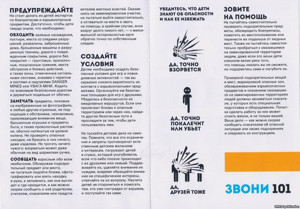 Школьников призывают избегать пустырей, зарослей травы и кустов, вообще мест, где есть разрушения и следы боев. Также детям категорически запрещают прикасаться к подозрительным предметам - в случае опасности необходимо звать на помощь взрослых и вызывать специалистов МЧС.