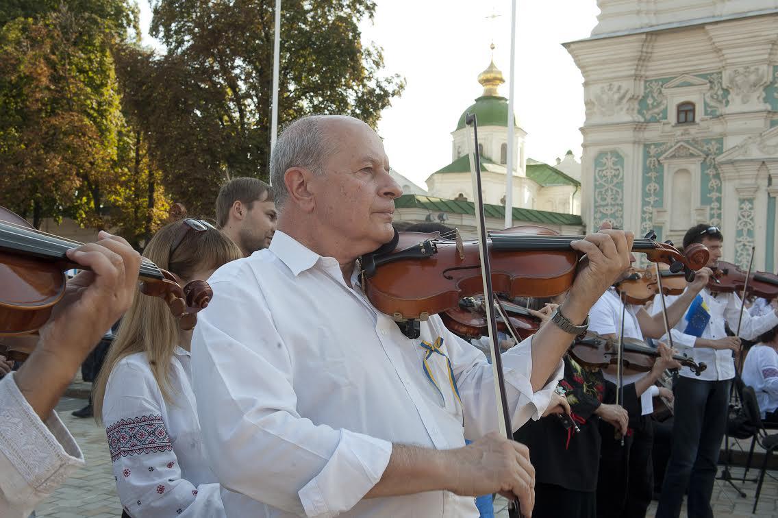 Участники акции - Национальная государственная академическая капелла «Думка», Национальный академический симфонический оркестр Украины, хор студентов Национальной музыкальной академии Украины им. П.И.Чайковского, хоровая капелла мальчиков и юношей « Дзвіночок » и камерный девичий хор КССМШ им.. Лысенко.