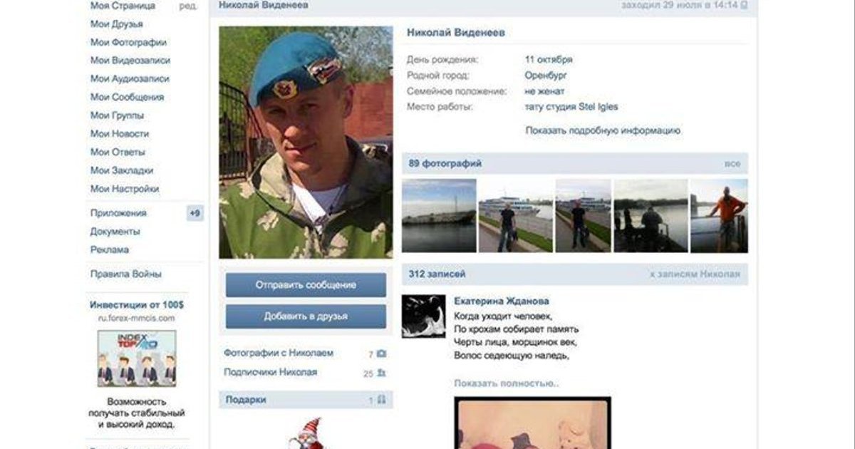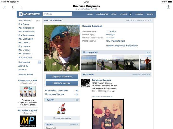 "Ватник, Николай Виденеев, около 32 лет, служил в спецназе ГРУ. Заблудилса в "степях Украины" и умер от "инсульта" вчера при взятии донецкого аэропорта."