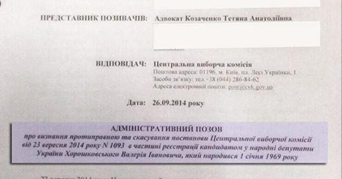 Киевский админсуд просят отменить регистрацию Хорошковского кандидатом в нардепы. ДОКУМЕНТ