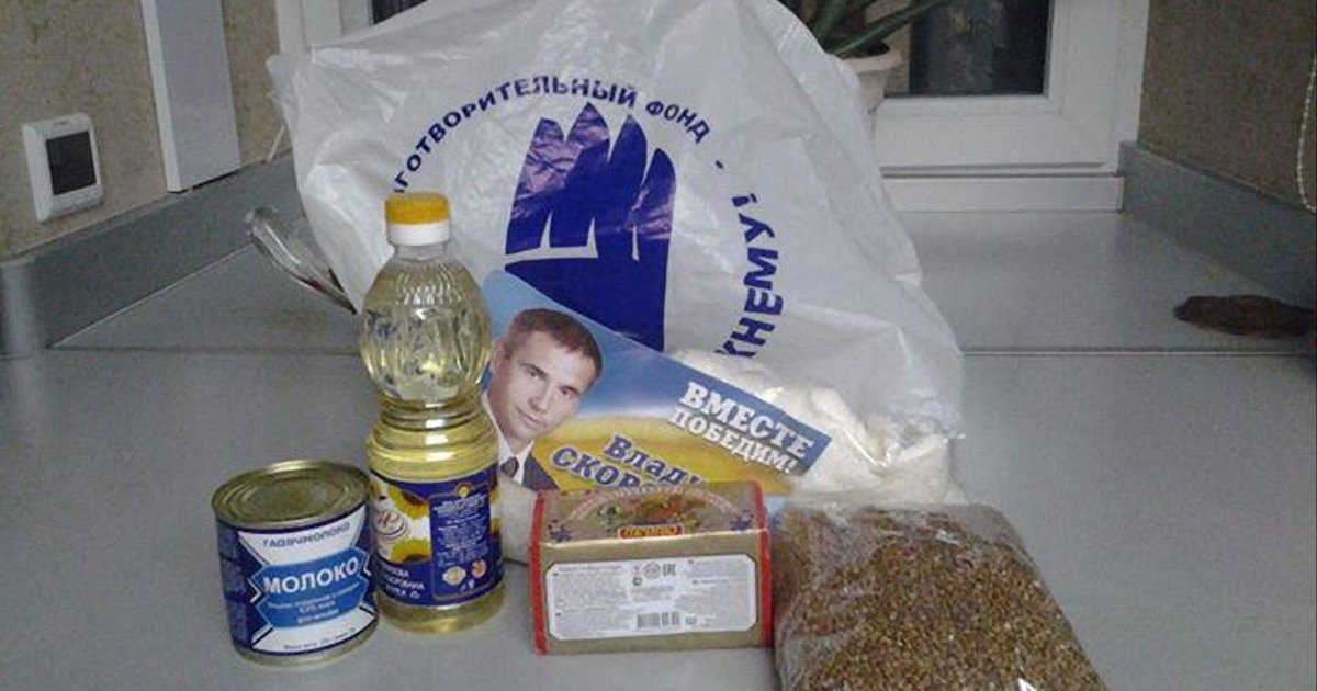 Ранее в сети появились сообщения о том, что в Харькове раздают гречку и другие продукты в пакете вместе с открыткой кандидата в народные депутаты по округу 169, "регионала" Владимира Скоробогача.