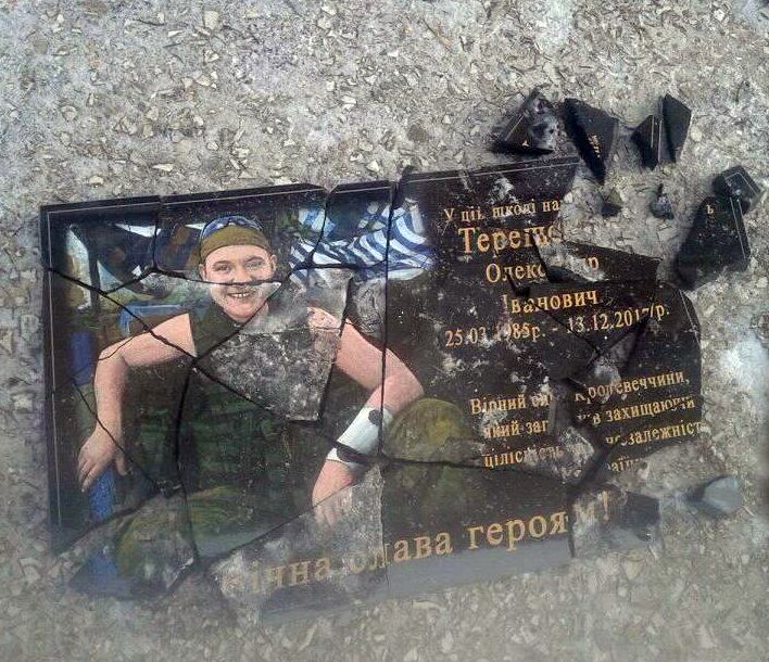 Вандалы на Сумщине разбили мемориальную доску погибшему бойцу 58-й ОМПБр Терещенко. ФОТОрепортаж