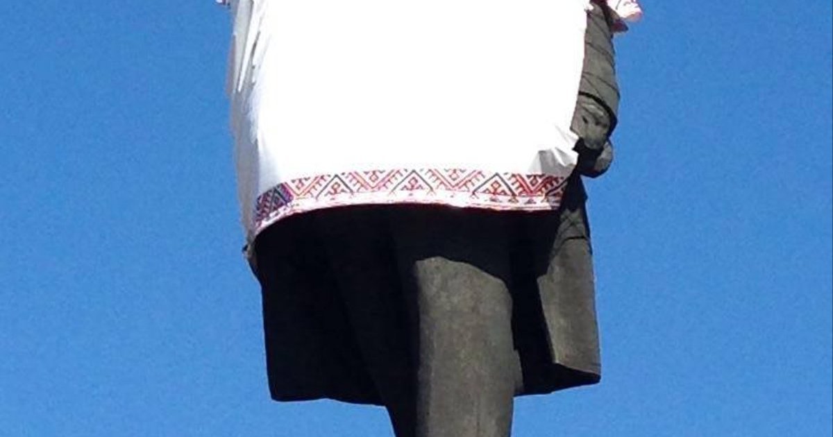 Запорожские активисты одели памятник Ленину в огромную вышиванку.