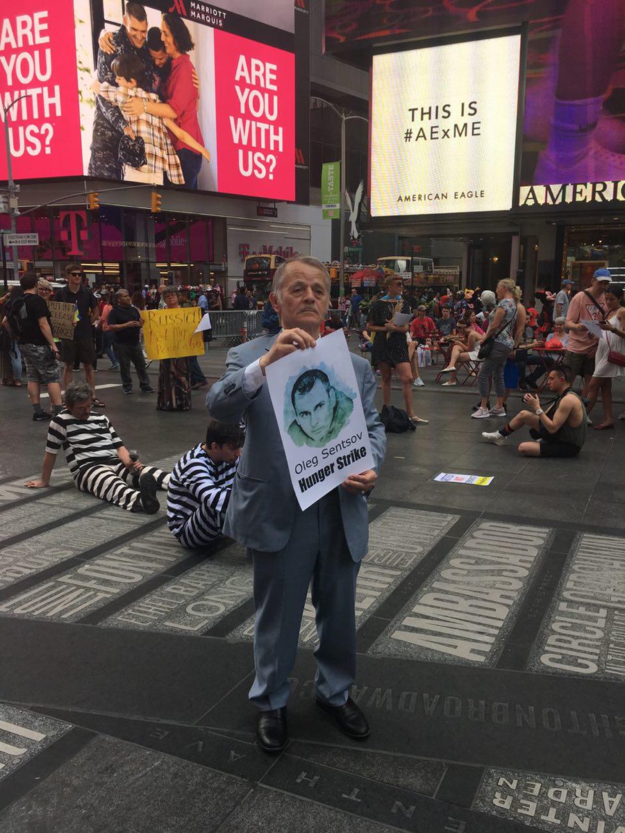 "В Нью-Йорке на Таймс-сквер проходит перформанс в поддержку украинского режиссера Олега Сенцова. В акции принял участие бывший глава Меджлиса крымскотатарского народа Мустафа Джемилев", – говорится в сообщении.