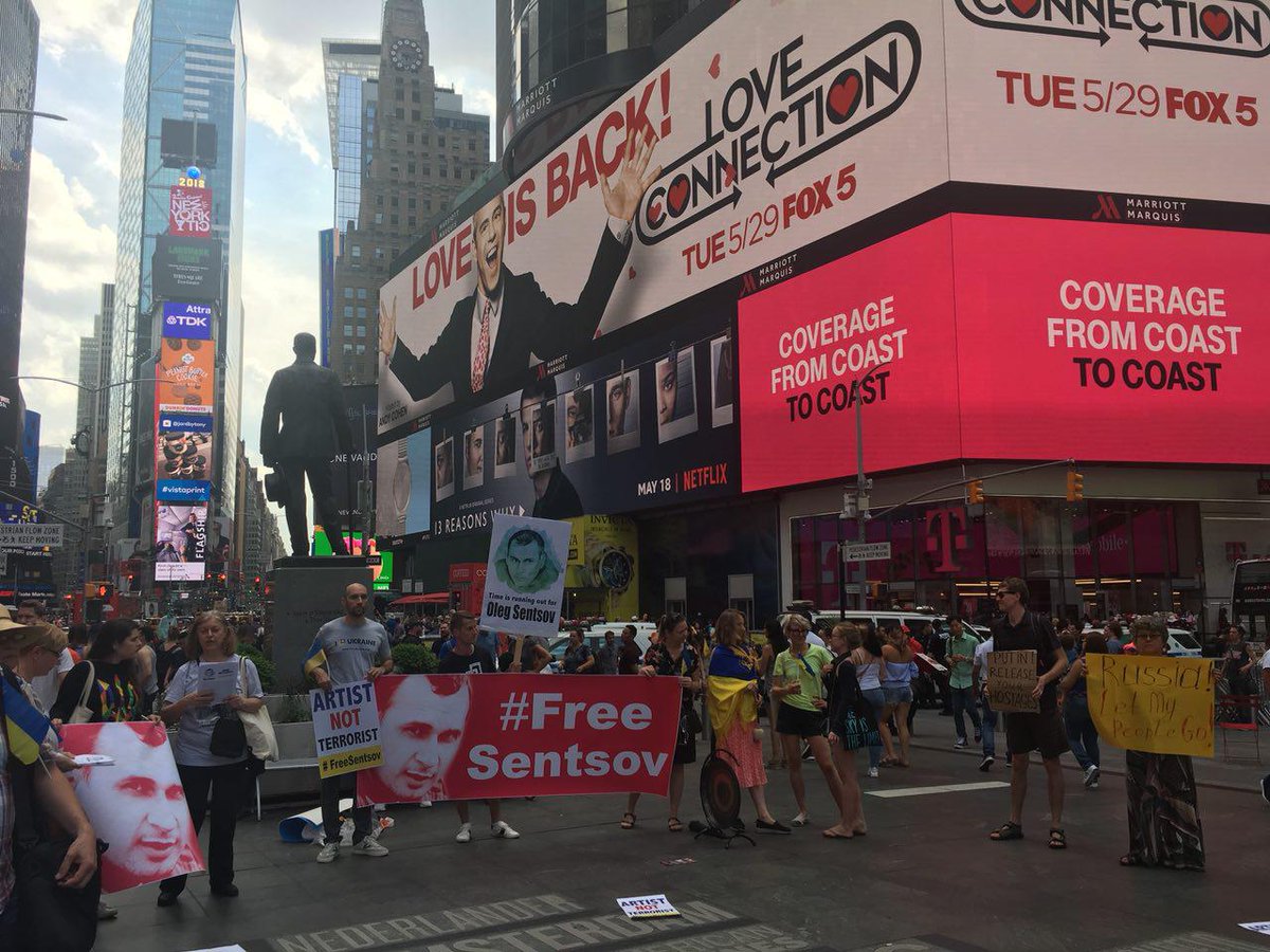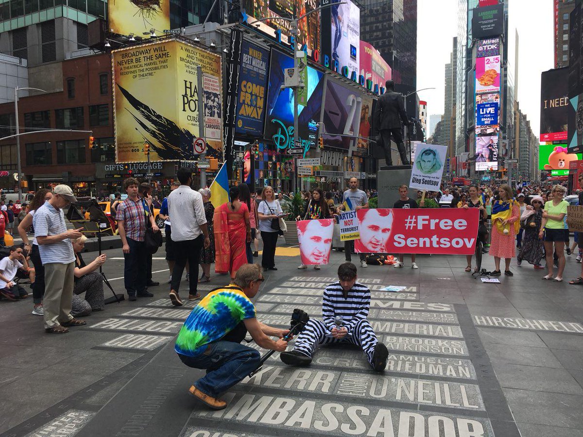 На площади Таймс-сквер в американском Нью-Йорке сегодня состоялся перформанс в поддержку осужденного в РФ украинского режиссера Олега Сенцова, передает Цензор.НЕТ со ссылкой на Гордон.