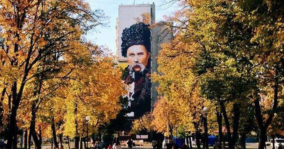 В Харькове на фасаде 17-этажного дома на Садовом проезде нарисовали огромный портрет Тараса Шевченко.