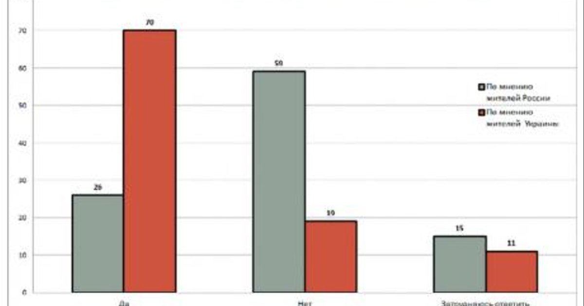 Подавляющее большинство жителей Украины 70% признают, что между Украиной и Россией идет война, среди россиян таковых – только 26%.