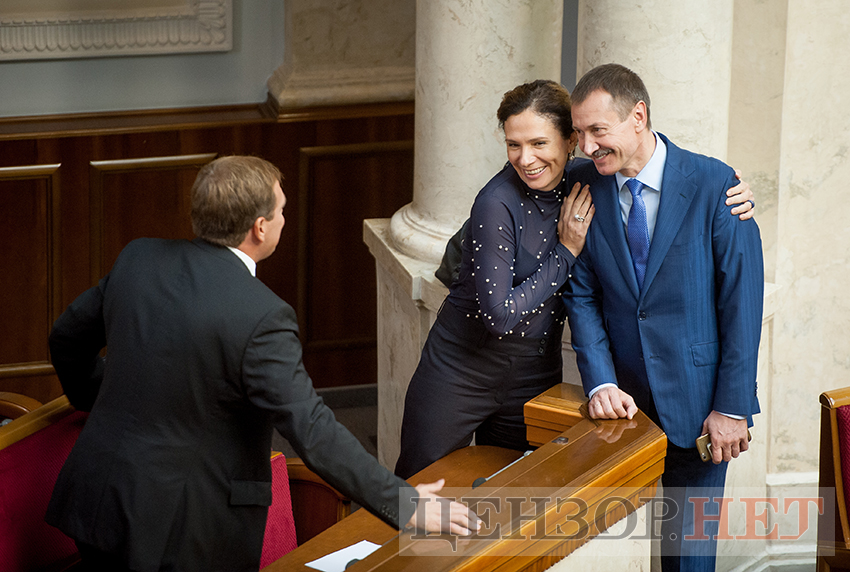Объятия, улыбки и телефон у троих оппоблоковцев - Николая Скорика, Юлии Левочкиной и Михаила Папиева
