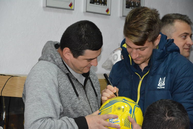 Украинские футболисты проведали раненых бойцов в столичном госпитале. ФОТО
