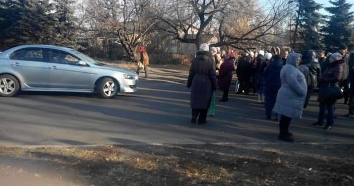 Несколько десятков жителей Макеевки (Донецкая область) в районе здания исполнительного комитета перекрыли дорогу в знак протеста против действий террористической организации "ДНР".