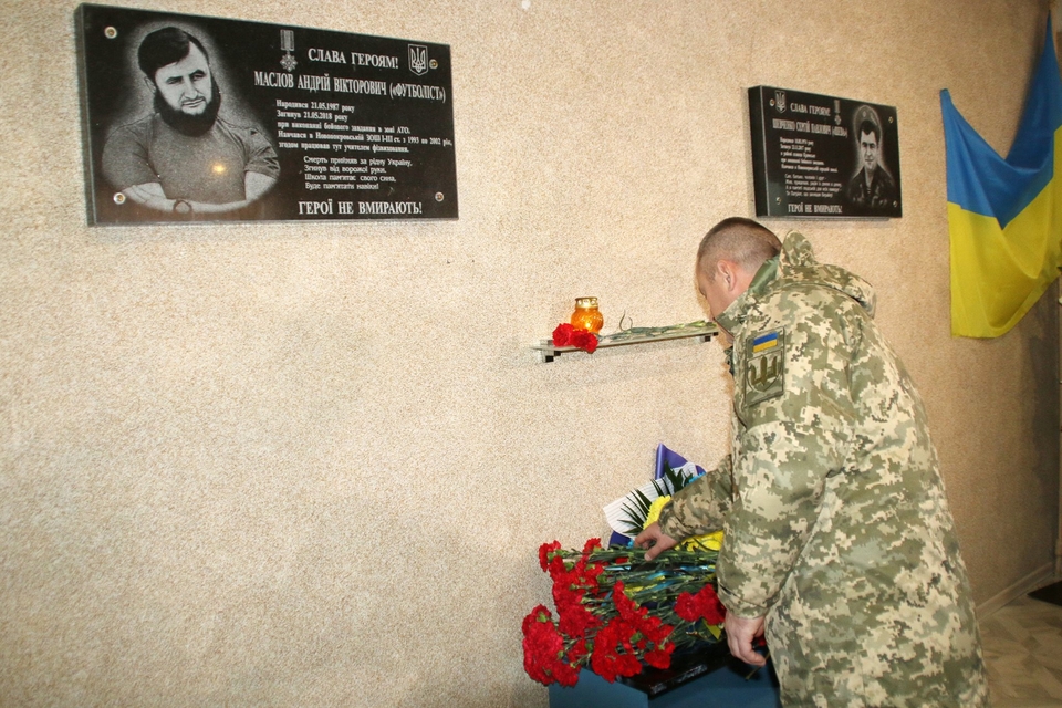 Мемориальные доски погибшим на Донбассе военнослужащим Андрею Маслову и Сергею Шевченко установлены в Новопокровском учебно-воспитательном комплексе в Чугуевском районе Харьковской области.