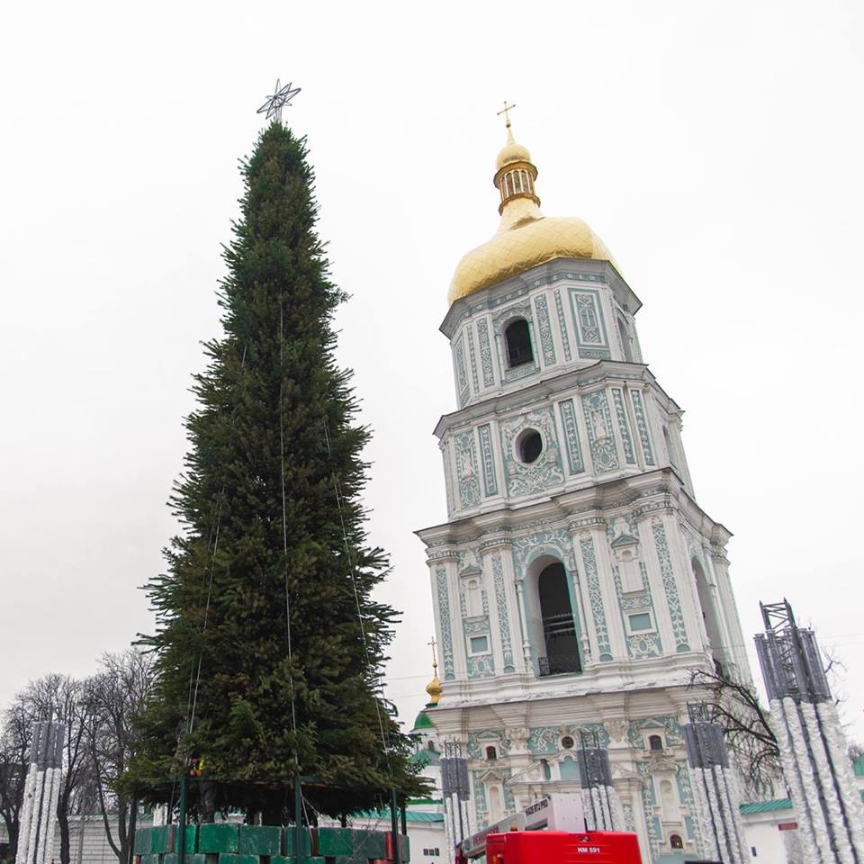 На Софийской площади в Киеве установили 27-метровую новогоднюю елку. ФОТО