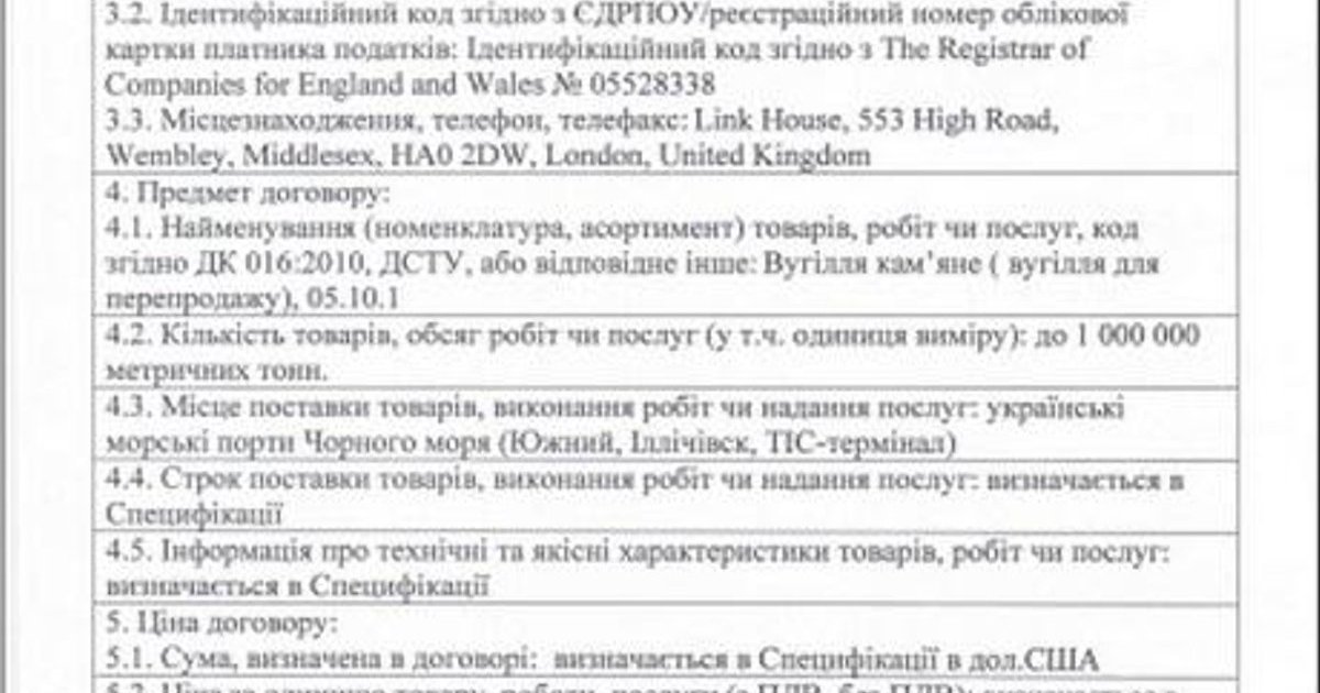 В отчете сказано, что цена договора и цена за единицу товара является конфиденциальной информацией в соответствии с условиями договора. Марки угля также не обнародованы. Контракт будет действовать до 28 февраля 2015.