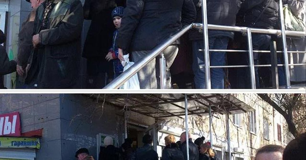 Дончанам приходится под обстрелами выстаивать огромные очереди возле банкоматов. ФОТО