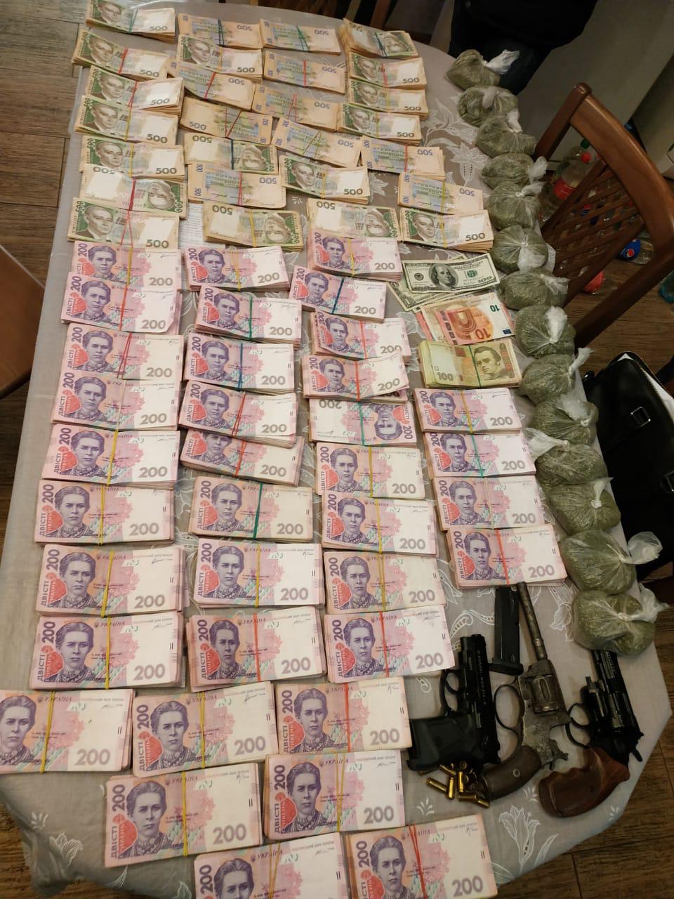 По результатам 7 обысков, проведенных в местах незаконного изготовления, хранения и сбыта фальсификата, из незаконного оборота изъяты 8,2 тыс. литров спирта, разлитого в пластиковые бочки, 484,5 литров фальсифицированного алкоголя, разлитого в пластиковые емкости, почти 10,5 кг вещества растительного происхождения зеленого цвета (похожа по признакам на наркотическое вещество) в полиэтиленовых пакетах и картонных коробках, 634 тыс. гривен, 100 евро и 131 доллар США, пластиковую тару и оружие.