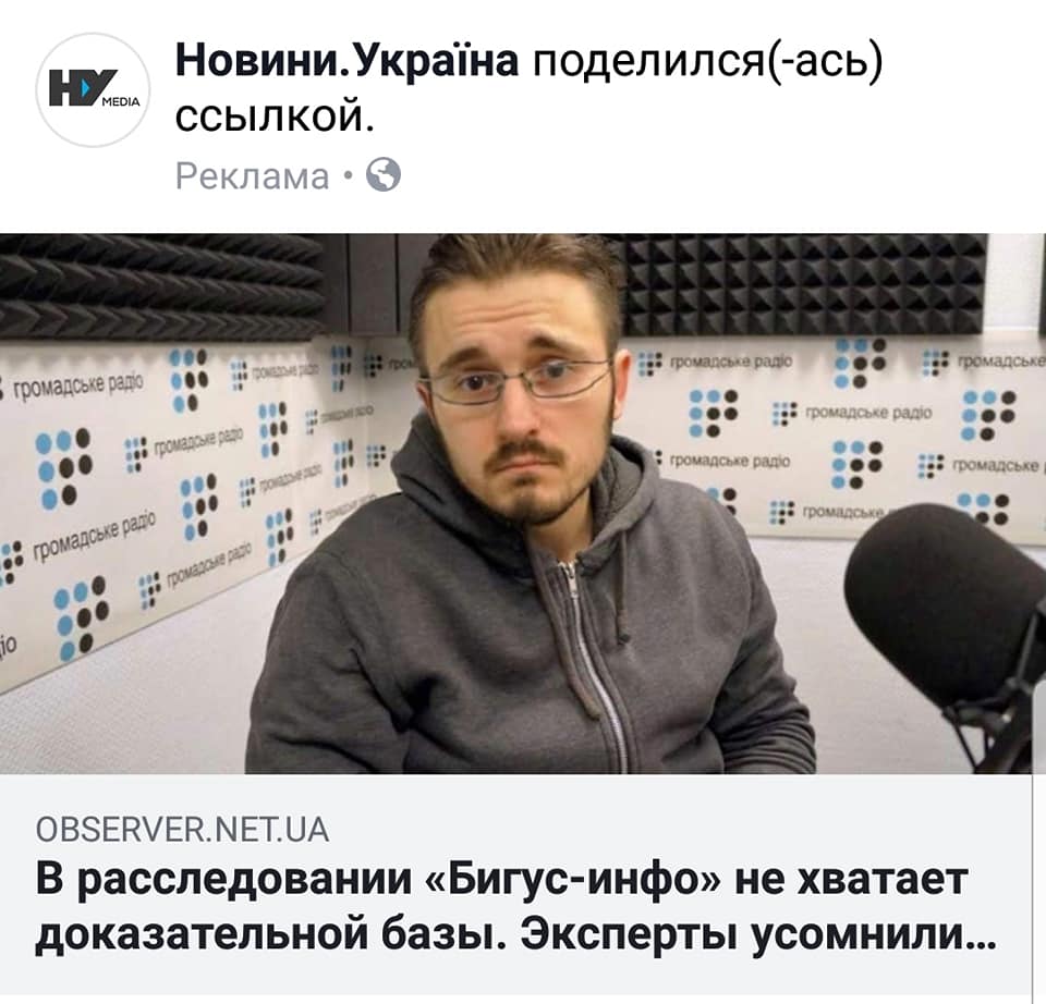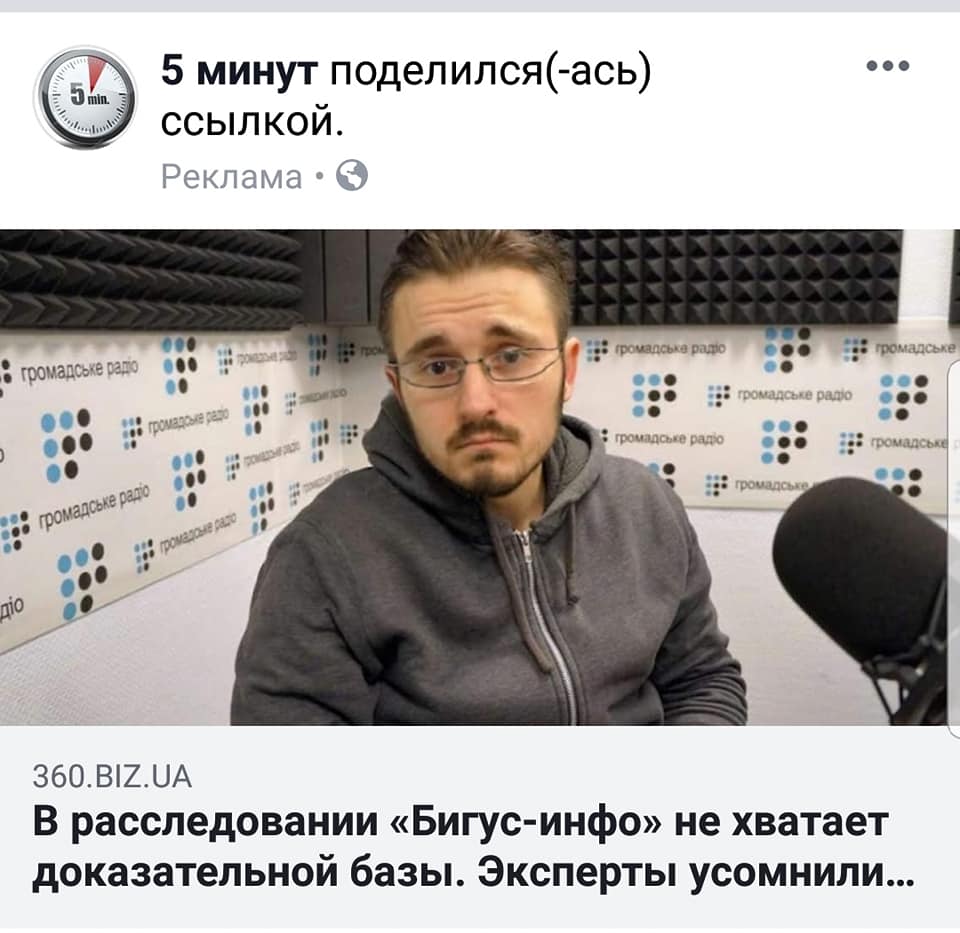 В Facebook появились рекламные посты с дискредитацией расследования Бигуса. Дешево и бездарно, - Борислав Береза. ФОТО