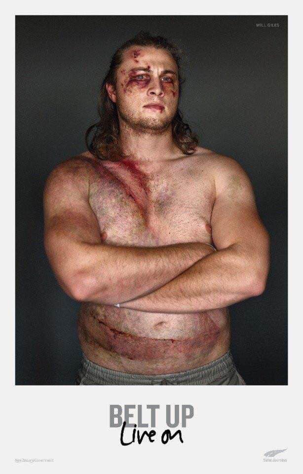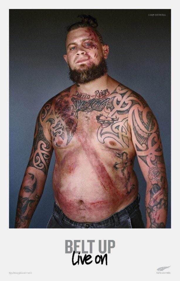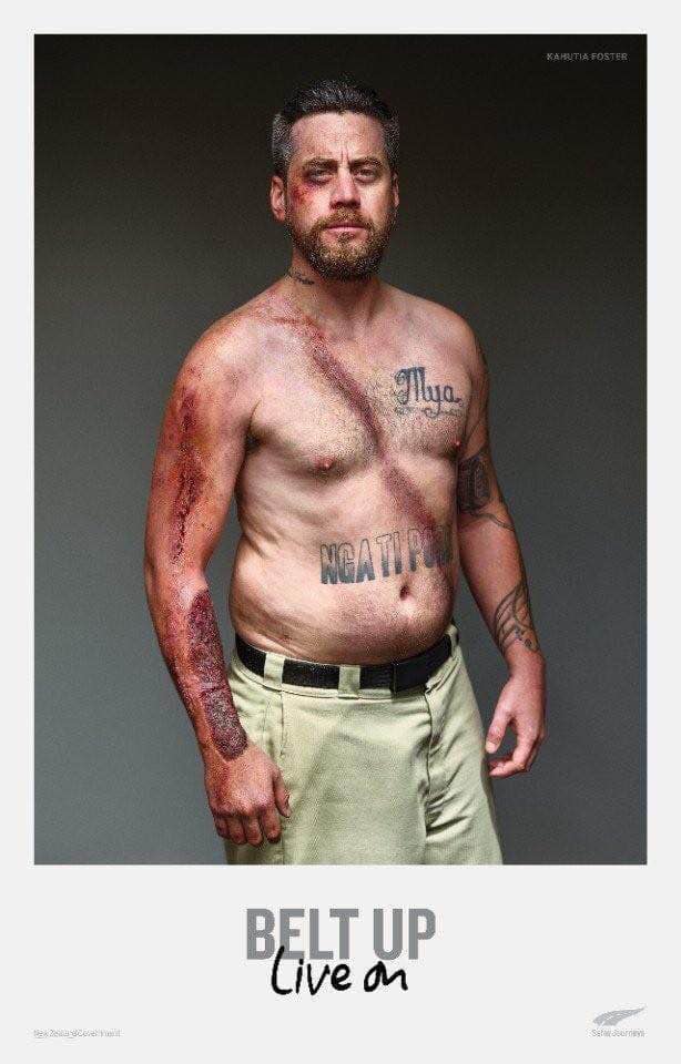 Национальное транспортное агентство Новой Зeландии проводит социальную рекламную кампанию с реальными участниками ДТП, которые выжили благодаря пристегнутому ремню.