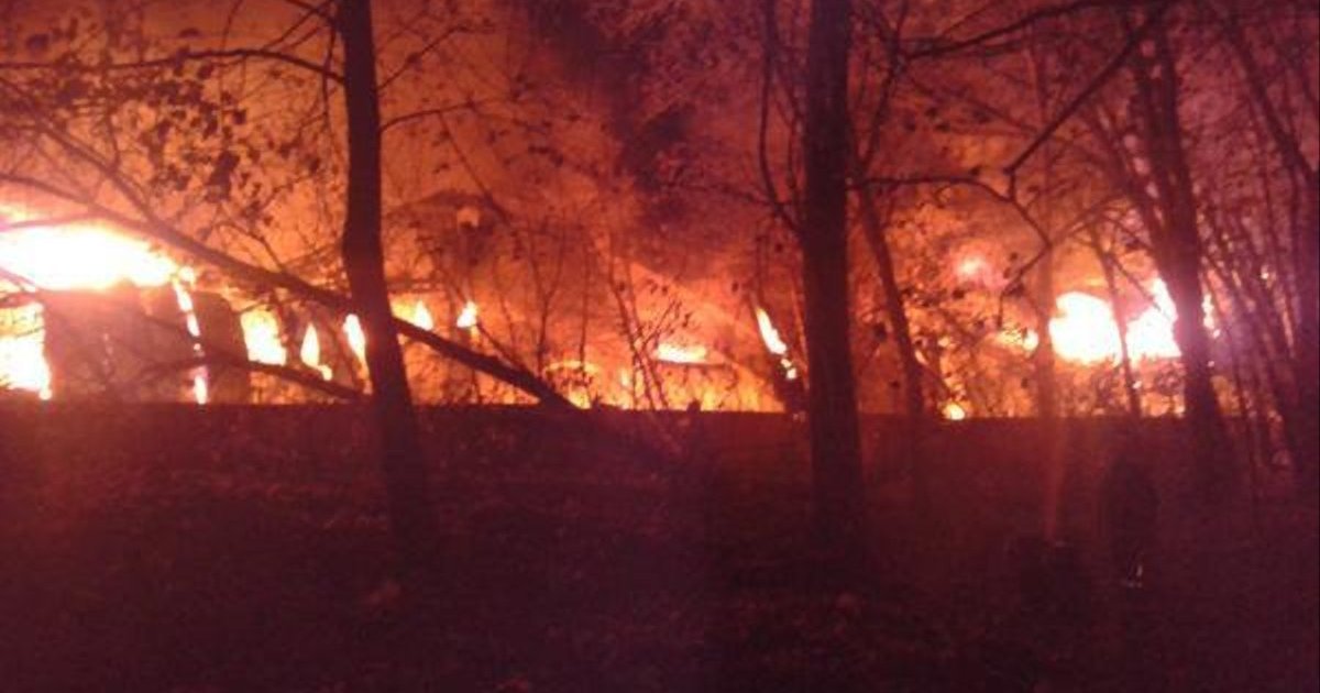 Корреспондент издания отмечает, что возле парка Пушкина над ангаром стоит огненная стена около 50 метров. Приехало очень много пожарных и скорая помощь. Слышны хлопки и небольшие взрывы, полыхает огонь. Сгорело несколько деревьев. Пожарные тушат пламя со стороны парка, чтобы огонь не перебросился на деревья.