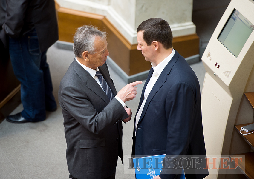 Олег Куприенко (Радикальная партия, слева) перешептывается о чем-то Сергей Шахов ("Воля народу").