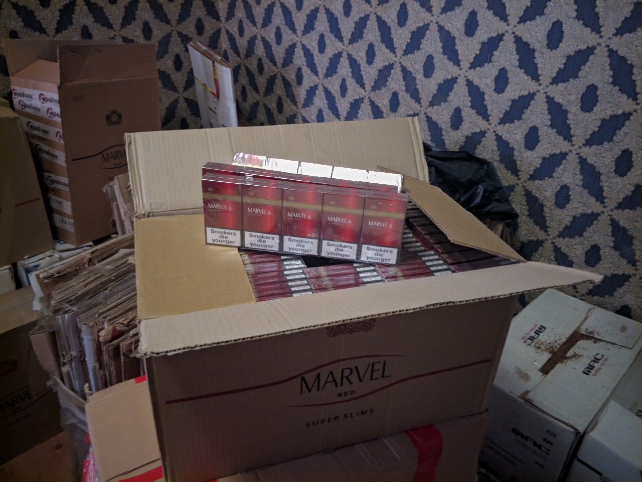 В результате ряда санкционированных обысков, проведенных в местах незаконного производства и хранения подакцизной продукции, из незаконного оборота изъято 164 тыс. 806 пачек сигарет стоимостью почти 5 млн грн, часть из которых была незаконно изготовлена в подпольном цехе и часть, ввезенная на территорию Украины вне таможенного контроля из Молдовы, Беларуси и стран Ближнего Востока.