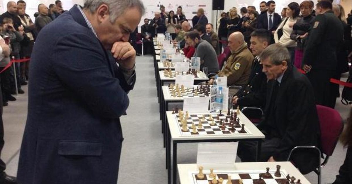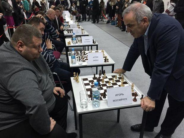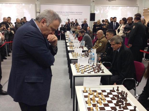 Против него играли ряд украинских военных и волонтеров, в том числе Артем Витко ("Луганск-1"), Игорь Мосийчук (экс-"Азов"), Андрей Ватовкин ("Святая мария"), министр молодежи и спорта Игорь Жданов. Напомним, что Каспаров был 13-м чемпионом мира. В 1985 году он в 22-летнем возрасте победил Анатолия Карпова и затем удерживал титул чемпиона до 2000 года.