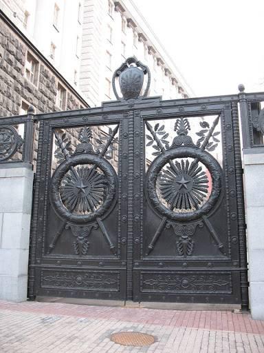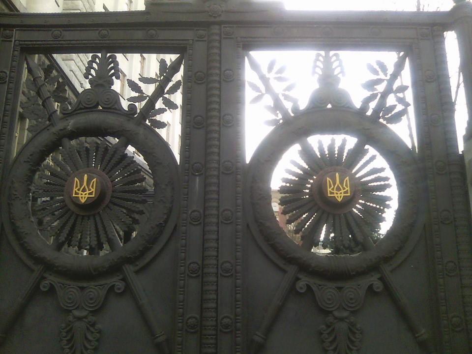 На воротах Дома правительства в Киеве вместо советских символов теперь красуются трезубцы.