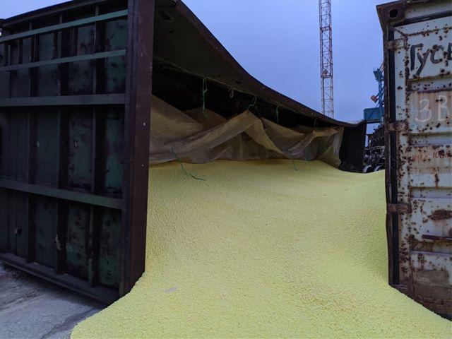 "От переполнения хранилища здесь произошел обвал стенок, высыпалось значительное количество гранулированной серы", — сказали в порту.