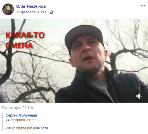 Так, Немчинов называл Зеленского "Голобородько" и "резидентом", постил материалы, в которых президента окрестили "кумиром быдла" и высказывал сомнения касательно его преданности стране.