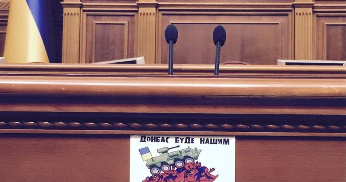 "Донбас буде нашим!", - трибуну ВР украсили патриотическим плакатом. ФОТОфакт