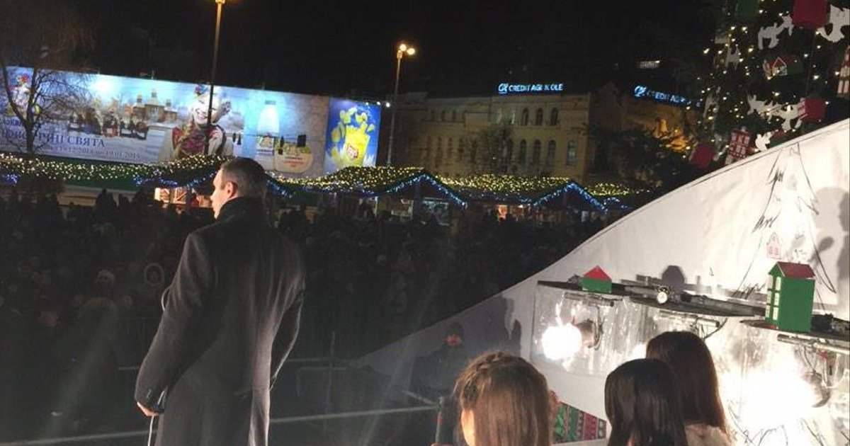 Мэр Киева Виталий Кличко открыл новогоднее празднование в рождественском городке на Софийской площади Киева.