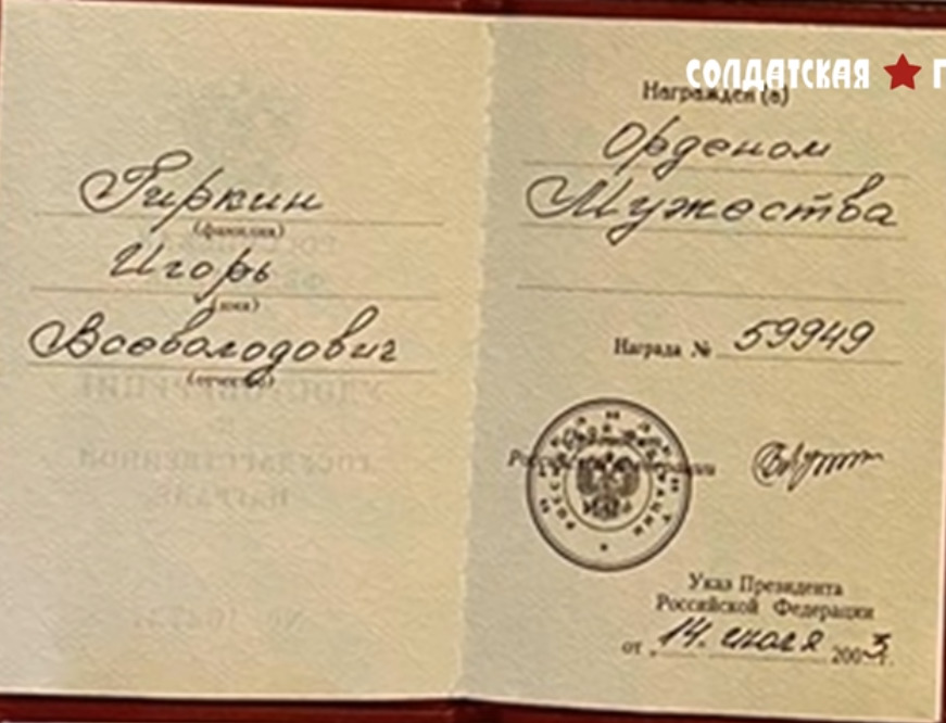 Обнародованы документы и награды сотрудника ФСБ Гиркина, развязавшего войну на Донбассе. ФОТО