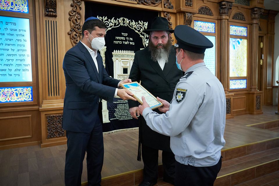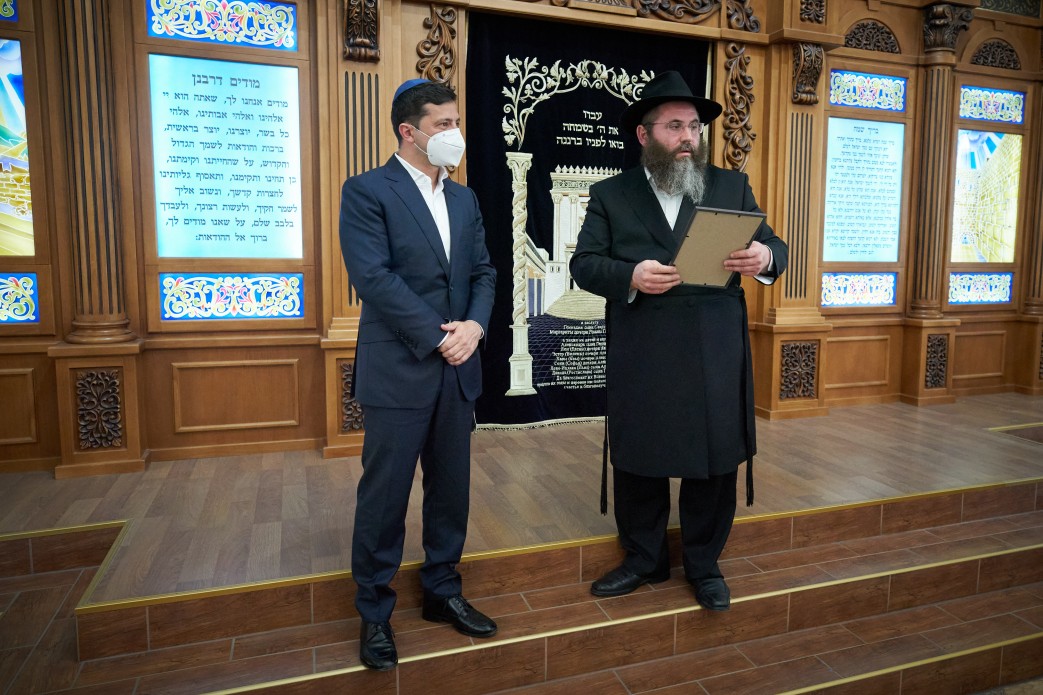 Зеленский осмотрел отремонтированные части здания, которое злоумышленники повредили при попытке поджога в апреле этого года. Вольф поблагодарил Президента за быструю реакцию украинской власти на этот акт антисемитизма. За три недели после инцидента правоохранители задержали двух подозреваемых в этом преступлении.