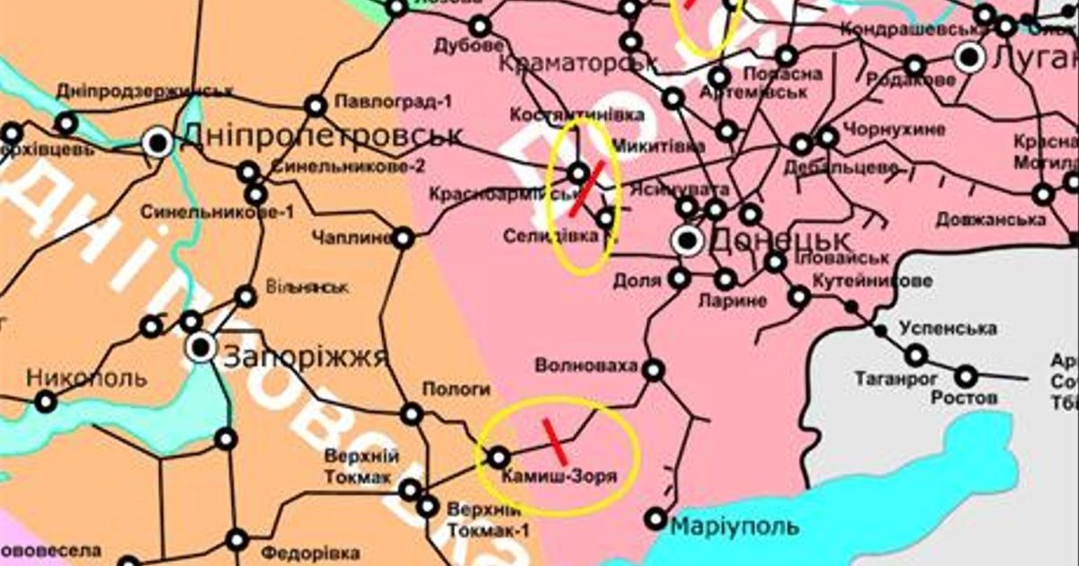 Железнодорожное сообщение с Мариуполем и Волновахой полностью прервано, - "Укрзализныця". Карта