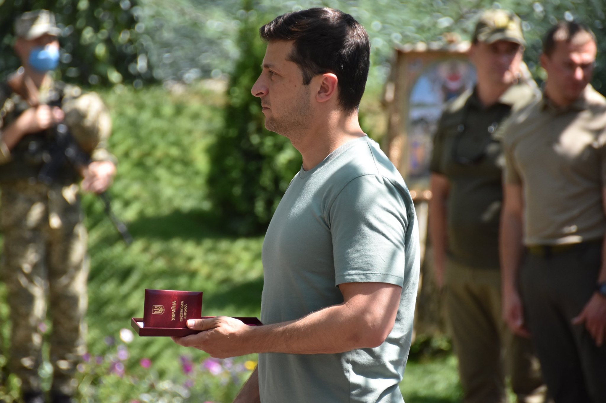 Кроме того, президент вручил государственные награды украинским защитникам, которые несут службу в зоне проведения ООС. За личное мужество, проявленное во время боевых действий, и образцовое выполнение воинского долга Зеленский наградил военнослужащих орденом "За мужество" III степени и медалью "За военную службу Украине".