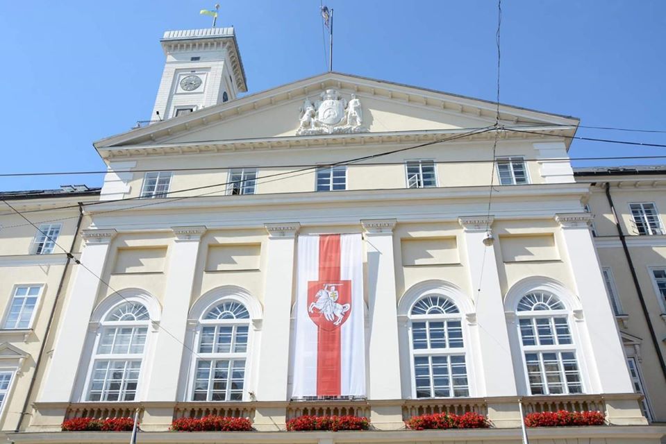 Мэрия Львова вывесила неофициальный флаг Беларуси: "Сябры, мы с вами!". ФОТО
