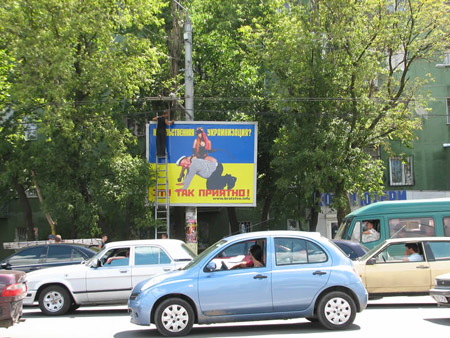 Этот плакат реально показывает сложившуюся обстановку в стране. Реально не дают альтернативы. Возможно все и лояльно относились бы к укр. языку, но когда берут нахрапом, это просто фигня. Один из шагов это украиноязычные фильмы в кинотеатрах. Так конечно все начнут возмущаться. Неужели нельзя предоставить человеку выбор на каком языке ему говорить или смотреть фильм. Уверен, те кто больше всех орёт за укр. мову, в быте говорит на русском, либо на диком суржике. Лохи. Это утопия!!!!!!!