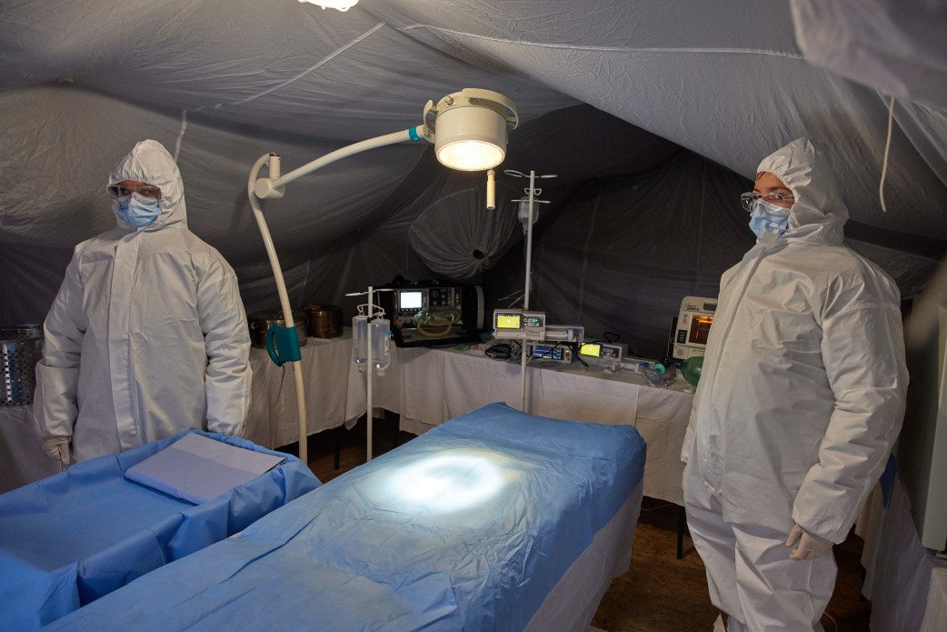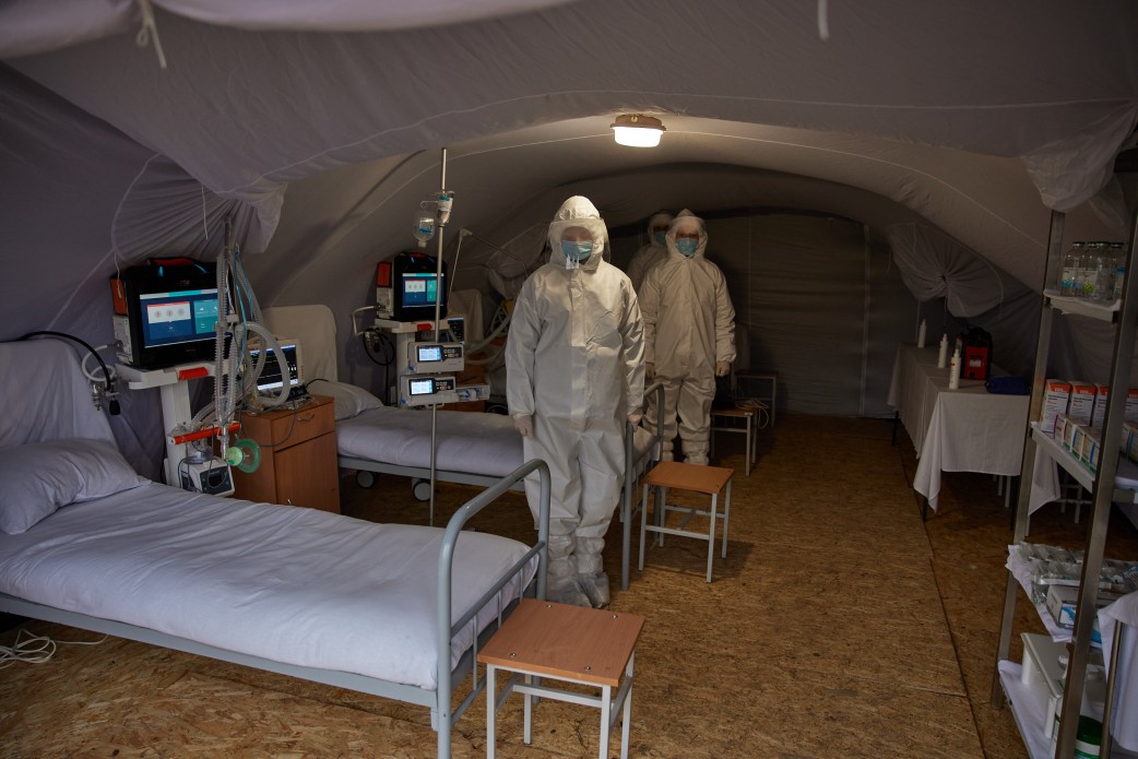 Также глава государства осмотрел помещение мобильного полевого госпиталя, рассчитанного на прием 60 пациентов. Лабораторное отделение оснащено современным оборудованием, в том числе рентген-аппаратами, аппаратами компьютерной томографии и УЗИ. Часть оборудования закуплено за счет средств, выделенных из Фонда борьбы с COVID-19. Полевой госпиталь имеет необходимое оборудование для отопления в зимний период.