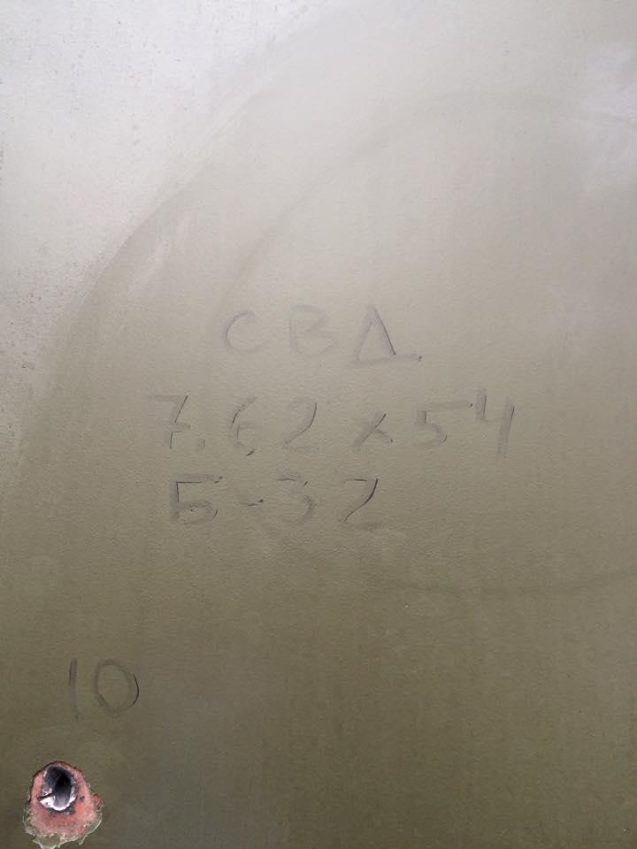 Кстати .. Б-32 это 12.5 мм а пробоина в борту подписанная Б-32 от 7.62 СВД ..