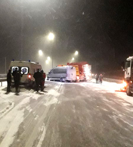 Сегодня около 7 утра на автодороге "Киев-Чоп" вблизи села Сынив Ривненской области произошло ДТП с участием маршрутного автобуса и снегоочистительной машины.